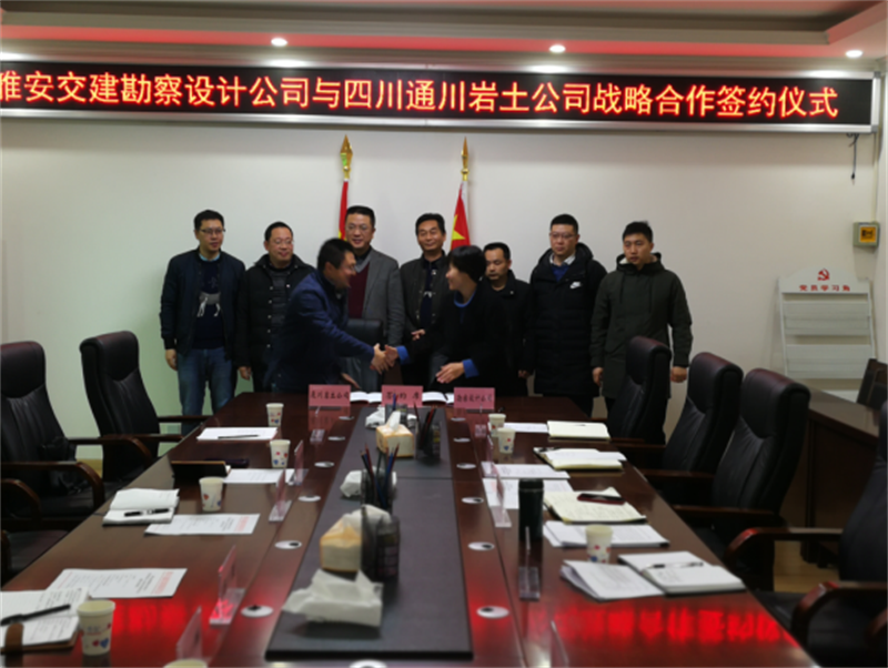 3月7日,雅安交建集團勘察設計有限公司與四川省通川巖土工程技術開發(fā)有限責任公司就公路行業(yè)領域公路工程(勘察、設計)、地質災害治理(勘查、設計)等業(yè)務范圍內(nèi)的各個方面展開多層次、全方位的合作洽談,并簽訂了戰(zhàn)略合作協(xié)議。集團公司副總經(jīng)理、勘察設計公司執(zhí)行董事兼總經(jīng)理丁春、四川省交通運輸廳公路規(guī)劃勘察設計研究院經(jīng)營處處長邱毅、四川省通川巖土公司總經(jīng)理牟琦等相關人員出席了簽約儀式。