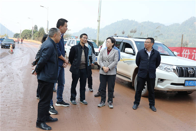 11月9日,副市長朱莉赴金雞關、黑碾子、丁家壩等地,實地察看了雨名快速通道建設進展、線路設計、安全生產等情況。市政府副秘書長余萬俊、市交通運輸局局長余云峰、交建集團董事長漆家華陪同調研。