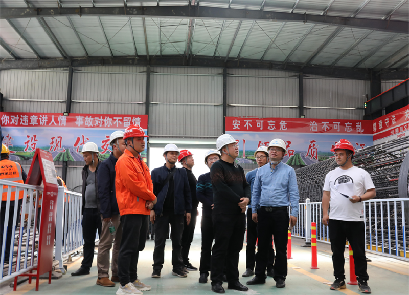 羅倫全一行通過聽取介紹、實地查看、座談交流的方式,重點就項目部駐地規(guī)范化、精細化建設(shè),鋼筋加工場、拌合站、隧道洞口等主要施工場地的場地規(guī)劃、安全設(shè)施布置,鋼筋加工場和拌合站智能化、標(biāo)準(zhǔn)化作業(yè),隧道工程科學(xué)化施工、黨建文化生活、勞務(wù)管理等進行全面學(xué)習(xí)交流。