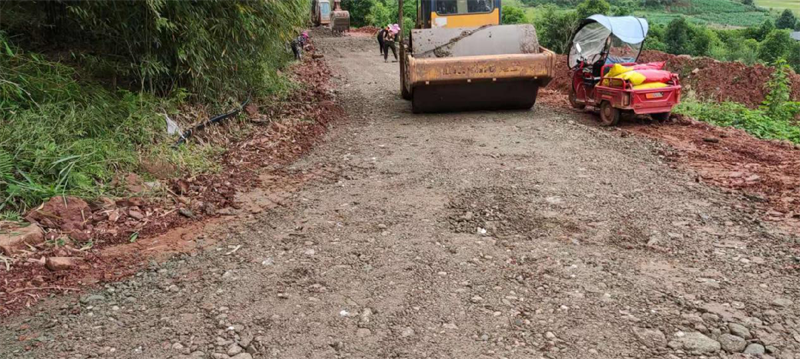 在路橋公司承接的“世界銀行貸款蘆山地震災(zāi)后恢復(fù)重建天全縣始陽至新華農(nóng)村公路”項(xiàng)目天全縣新華鄉(xiāng)柏樹村至永安村段,其村道路面結(jié)構(gòu)層差,路基窄,雨水多,晴通雨阻,對(duì)本地農(nóng)產(chǎn)品外運(yùn)造成很大困擾,嚴(yán)重影響了民眾的生產(chǎn)生活。為積極響應(yīng)市委市政府加快雅安市“四好農(nóng)村路”的部署安排,解決當(dāng)?shù)卮迕癯鲂须y、本土農(nóng)產(chǎn)品外銷滯后等問題,路橋公司天全項(xiàng)目部主動(dòng)作為,在推進(jìn)項(xiàng)目部主體建設(shè)的同時(shí),堅(jiān)持以問題為導(dǎo)向,采用“始新路”施工現(xiàn)場自拌水穩(wěn)料,為村民鋪設(shè)了一段長臨時(shí)水穩(wěn)路面,方便廣大村民順利出行,促進(jìn)當(dāng)?shù)剞r(nóng)產(chǎn)品物資交流。