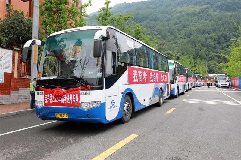 受6月1日蘆山地震影響,寶興縣暫不具備高考條件,天全縣成為寶興縣2022高考平移地點(diǎn)。6月9日下午,蜀通公司調(diào)集13輛大巴車將在天全順利完成高考的寶興考生,安全順利送回寶興。