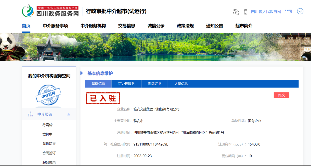為進(jìn)一步深化“放管服”便民服務(wù),加強行政審批中介服務(wù)事項管理,規(guī)范中介服務(wù)行為,經(jīng)雅安市雨城區(qū)運管所資格審核通過,近日,雅安交建集團平順檢測有限公司正式入駐四川政務(wù)服務(wù)網(wǎng)行政審批中介超市。