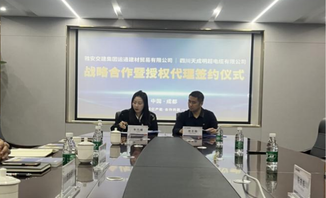 雅安交建建材公司按照集團(tuán)對運(yùn)輸貿(mào)易業(yè)務(wù)高質(zhì)量發(fā)展要求,積極開展建材市場新興產(chǎn)業(yè)調(diào)研和開拓。經(jīng)不懈努力,近日,與四川天成明超電纜有限公司(以下簡稱:天成公司)成功完成戰(zhàn)略合作暨授權(quán)代理簽約。