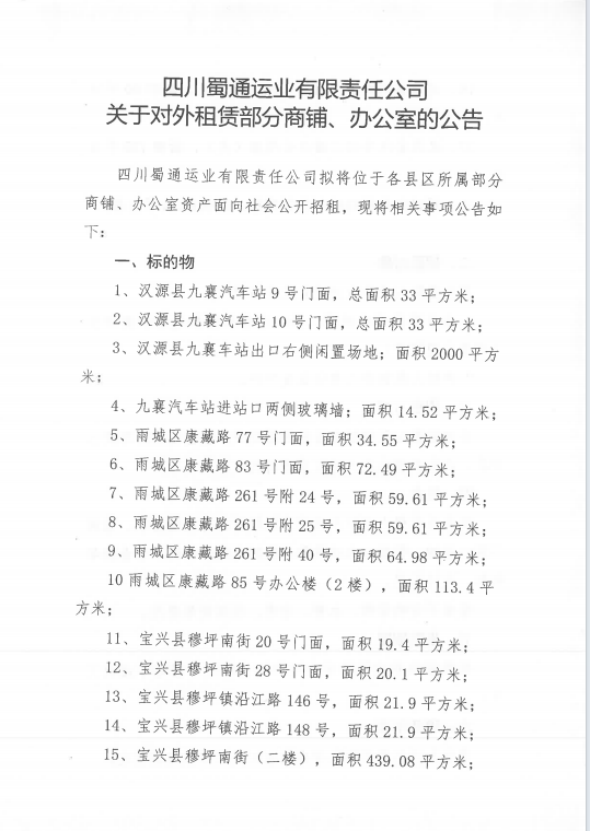 ËÄ´¨Êñͨß\(y¨´n)˜I(y¨¨)ÓÐÏÞØŸ(z¨¦)Èι«Ë¾êP(gu¨¡n)ÓÚŒ¦(du¨¬)Íâ×âÙU²¿·ÖéTÃæ¡¢Þk¹«ÊÒÙY®a(ch¨£n)µÄ¹«¸æ