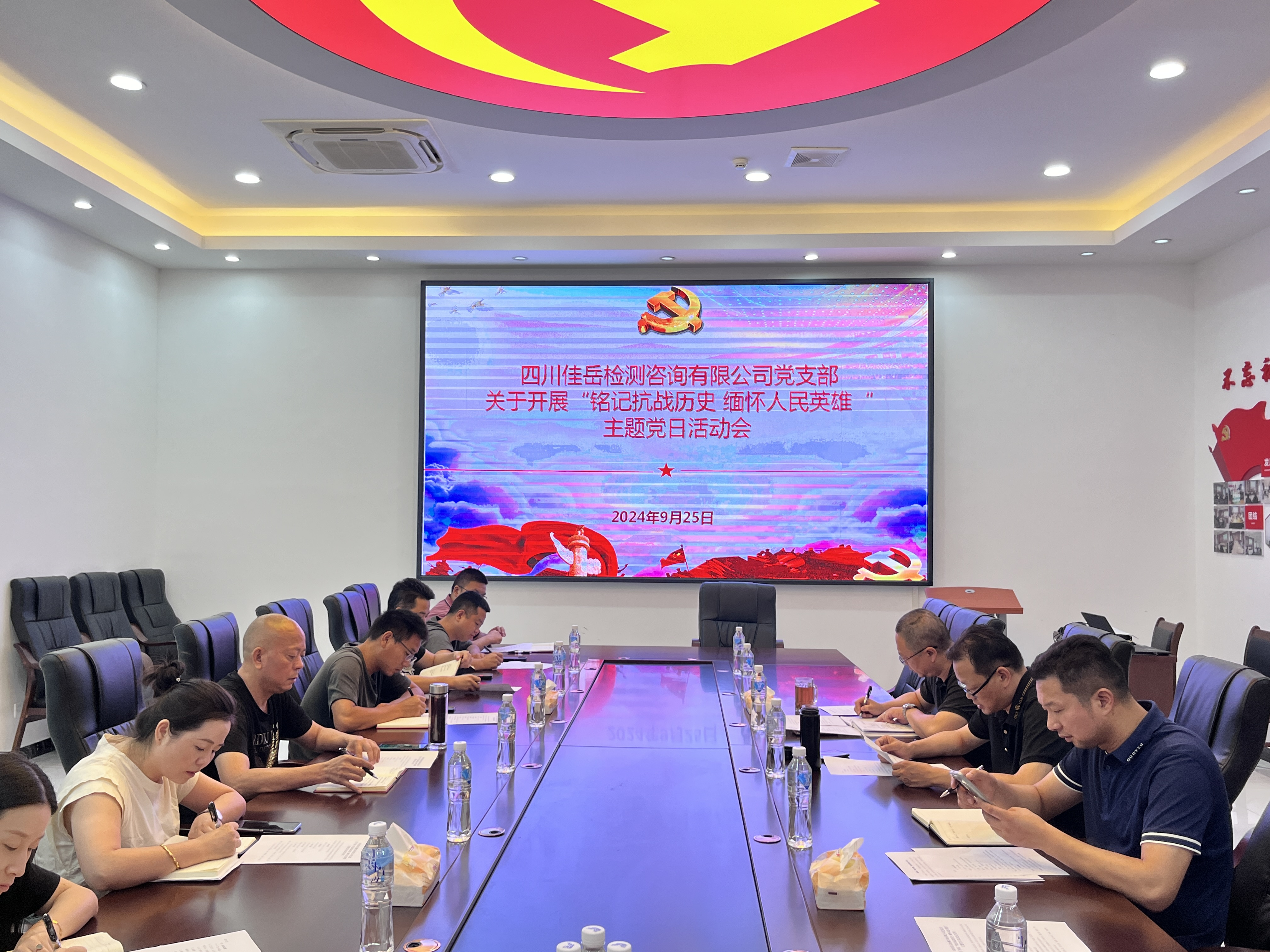 為增強(qiáng)全體黨員干部職工對(duì)抗日戰(zhàn)爭(zhēng)歷史的了解和認(rèn)識(shí),讓偉大抗戰(zhàn)精神薪火相傳,雅安交建集團(tuán)佳岳公司黨支部于9月25日,開展了“銘記抗戰(zhàn)歷史,緬懷人民英雄”主題黨日活動(dòng),公司全體黨員、入黨積極分子及中層干部參加。