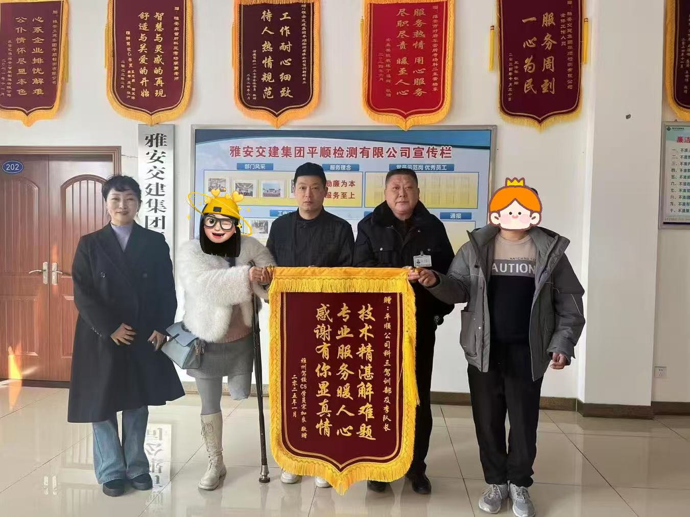“合格了,感謝你們給予我貼心的照顧和一路陪伴,讓我順利通過考試,幫助我完成了人生中的一件大事!”近日,雅州駕校殘疾考生宋女士將一面印有“技術(shù)精湛解難題 專業(yè)服務(wù)暖人心 感謝有你顯真情”字樣的錦旗送到了平順公司,對工作人員為他們提供熱情、周到的服務(wù)表示感謝。