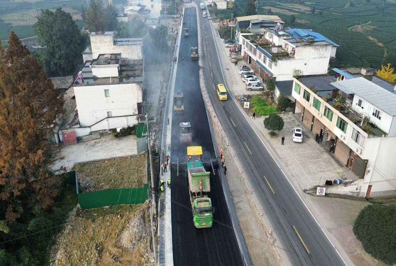 國道318線名山區(qū)黑竹(成都界)至雨城區(qū)多營段改建項目作為四川省重點項目,同時也是雅安“三區(qū)”同城化經(jīng)濟環(huán)線中北環(huán)線的重要組成部分,自開工以來始終保持高效推進(jìn)態(tài)勢。為實現(xiàn)2026年春節(jié)前主體工程貫通目標(biāo),近期,項目建設(shè)現(xiàn)場掀起“大干快上”熱潮,全體參建單位以“時不我待”的緊迫感沖刺節(jié)點任務(wù),各項工作取得突破性進(jìn)展。截至目前,項目累計完成投資24.95億元,完成產(chǎn)值17.6億元;路基、橋涵、隧道工程均完成90%以上,陸續(xù)進(jìn)入路面工程階段,前12公里改建段已建成通車。