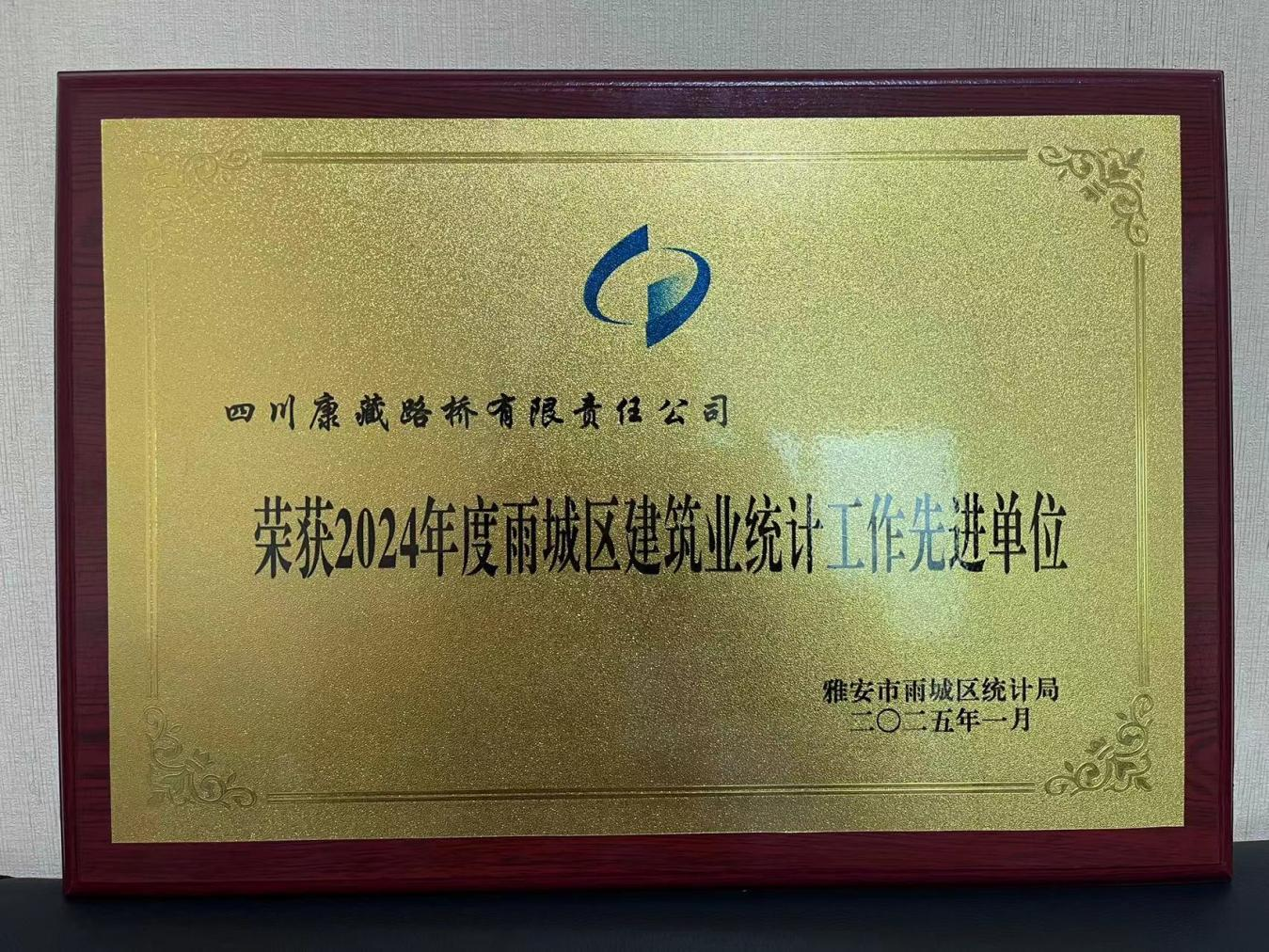 2025年1月,雅安市雨城區(qū)統(tǒng)計(jì)局授予四川康藏路橋有限責(zé)任公司“2024年度雨城區(qū)建筑業(yè)統(tǒng)計(jì)工作先進(jìn)單位”榮譽(yù)稱號。過去的一年,路橋公司積極配合統(tǒng)計(jì)工作,保障數(shù)據(jù)準(zhǔn)確及時(shí),為雨城區(qū)建筑業(yè)統(tǒng)計(jì)工作的順利開展提供堅(jiān)實(shí)的數(shù)據(jù)支撐。