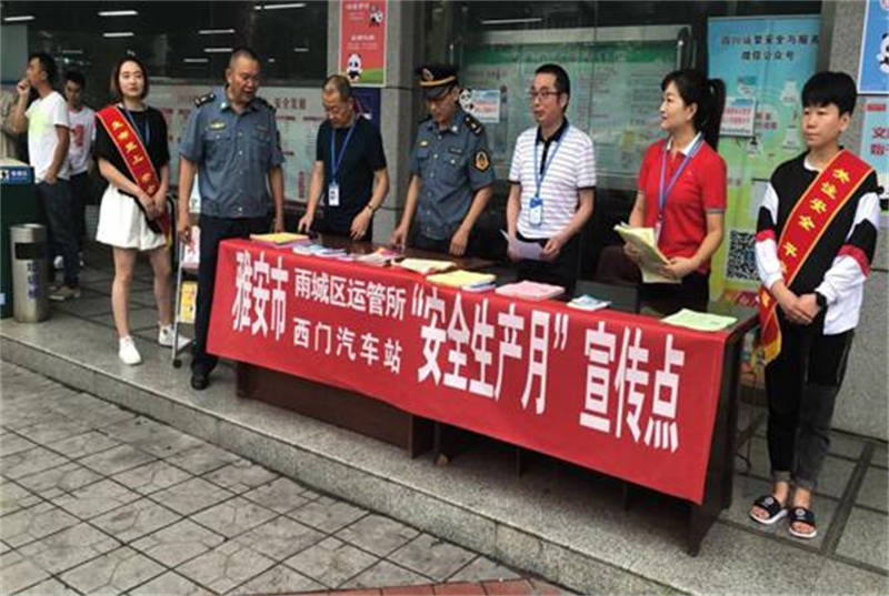 6月14日,蜀通公司雅安西門汽車站、雅安汽車站分別在站前廣場舉行了“防風(fēng)險、除隱患,遏事故”為主題的安全宣傳咨詢活動。西門車站精心準(zhǔn)備了宣傳片12個、專欄2個、海報7幅、LED橫幅12個等安全宣傳資料,現(xiàn)場發(fā)放各種安全宣傳資料1000余份;雅安汽車客運站設(shè)置安全專欄9個、LED標(biāo)語12幅、宣傳視頻10個、發(fā)放宣傳資料800余份。宣傳內(nèi)容涵蓋了安全生產(chǎn)法律法規(guī)、道路旅客運輸安全知識、公民預(yù)防恐怖活動行為指引、客運行業(yè)打非治違、客運班線實名制售檢票、安全帶的重要性、乘車安全常識、公共場所如何預(yù)防踩踏事故等安全知識和技能以及“三不進(jìn)站六不出站”管理規(guī)定及蜀通官方微信購票平臺等。