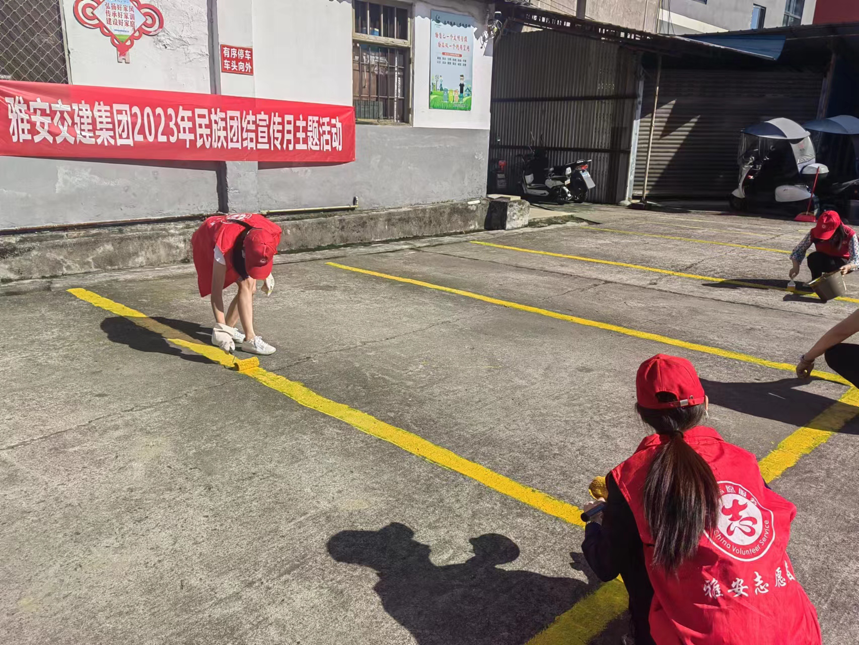 活動現(xiàn)場分宣傳講解、上門服務(wù)、衛(wèi)生清潔、停車場油漆添補4個小組。通過發(fā)放宣傳資料、現(xiàn)場答疑解惑、衛(wèi)生死角清掃、停車線添補等活動,向小區(qū)住戶、街道過往市民、車站乘客等群眾宣傳民族團結(jié)示范市創(chuàng)建工作相關(guān)問題和民族團結(jié)相關(guān)知識,進一步提升群眾對民族團結(jié)進步的認識,激發(fā)居民促進共同繁榮發(fā)展的主動意識,攜手推進民族團結(jié)進步創(chuàng)建,助力雅安市創(chuàng)建民族團結(jié)進步示范市工作。