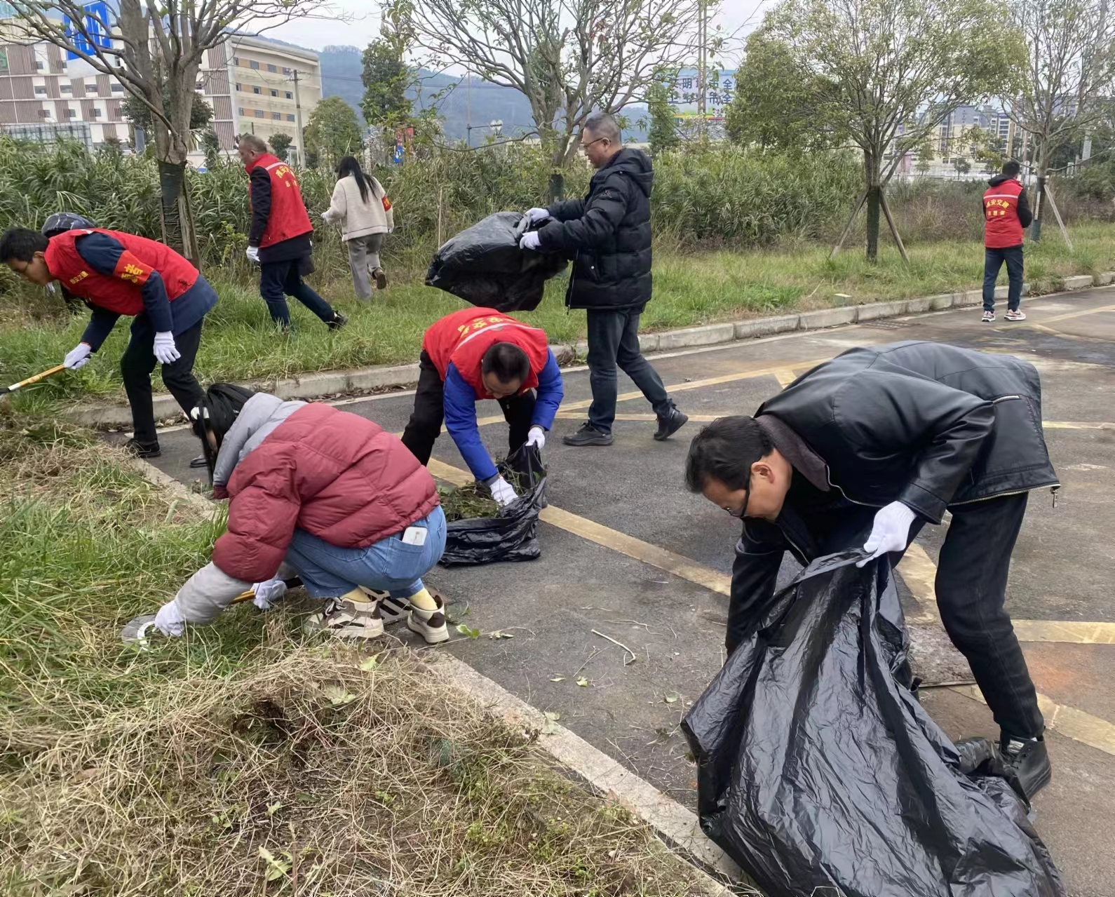 活動(dòng)中,20余名黨員、入黨積極分子、團(tuán)員身著紅馬甲,肩戴紅袖章,手持鐮刀、垃圾袋等清潔工具,以小組的形式,明確分工,對大興街道興貿(mào)路A段綠化帶雜草進(jìn)行清理,并撿拾各種紙屑、廢棄塑料袋等垃圾。