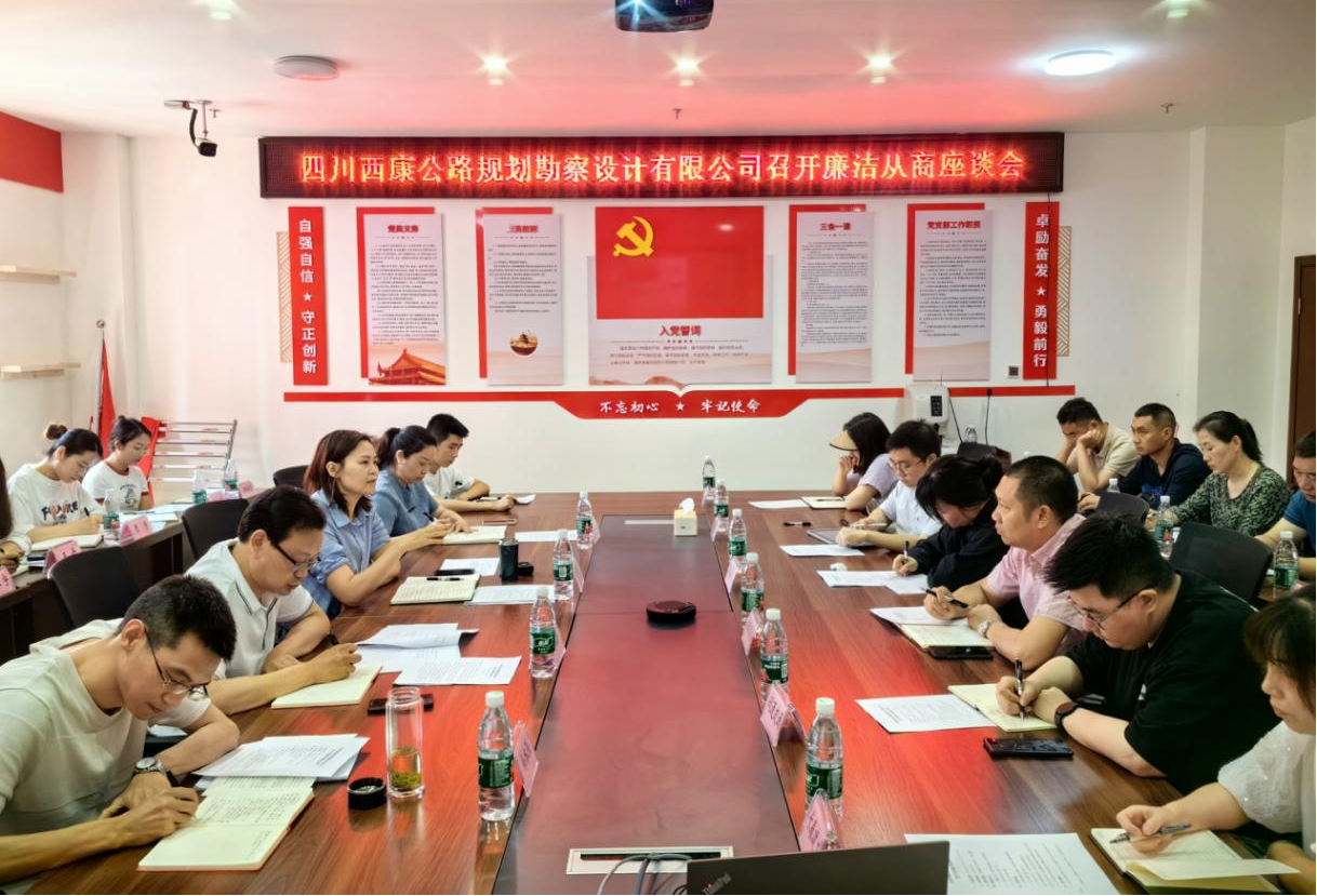 為弘揚清風(fēng)正氣,共建“親清”統(tǒng)一的企商關(guān)系,共筑廉潔自律反腐防線,營造更加優(yōu)良的發(fā)展環(huán)境。5月24日,雅安交建集團西康設(shè)計公司召開廉潔從商座談會,22家合作商、供應(yīng)商應(yīng)邀參加,集團黨委委員、副總經(jīng)理丁春出席會議并作重要講話,公司黨支部書記、執(zhí)行董事何銘新主持會議,公司全體中層干部參加會議。