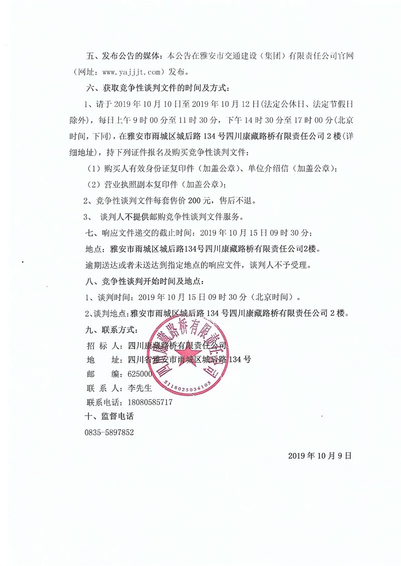 四川康藏路橋有限責(zé)任公司國道351線磽磧至夾金山路面改造工程波形護(hù)欄采購競爭性談判結(jié)果公示