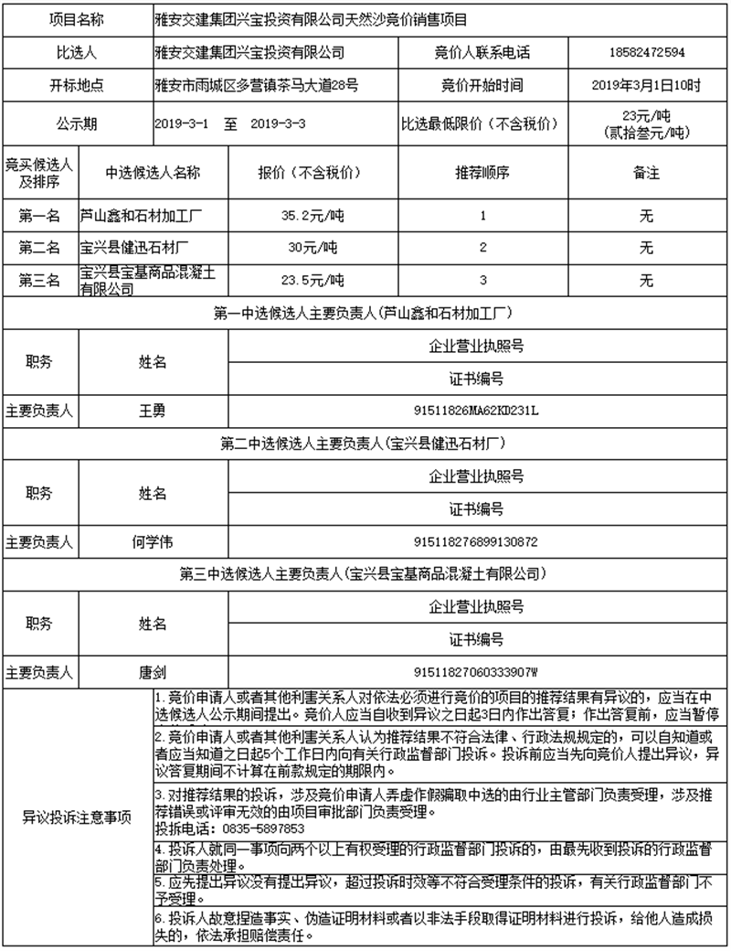 雅安交建集團(tuán)興寶投資有限公司天然沙競價(jià)銷售項(xiàng)目公示