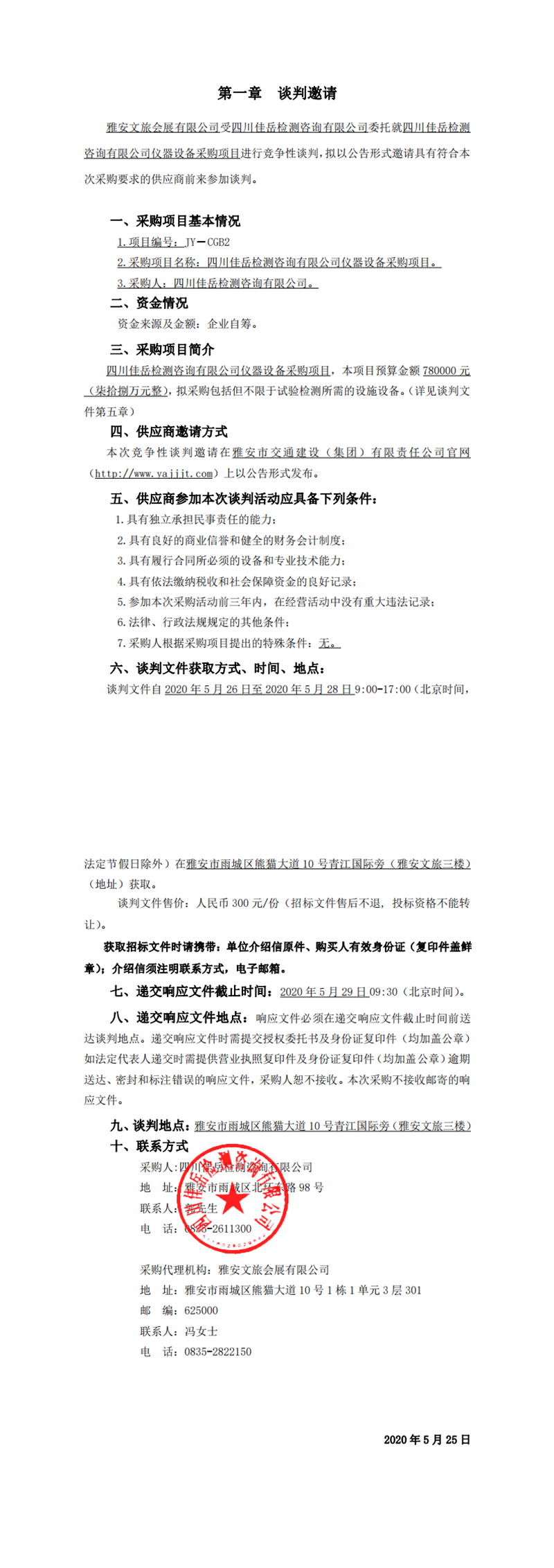 四川佳岳檢測(cè)咨詢(xún)有限公司儀器設(shè)備采購(gòu)項(xiàng)目競(jìng)爭(zhēng)性談判公告