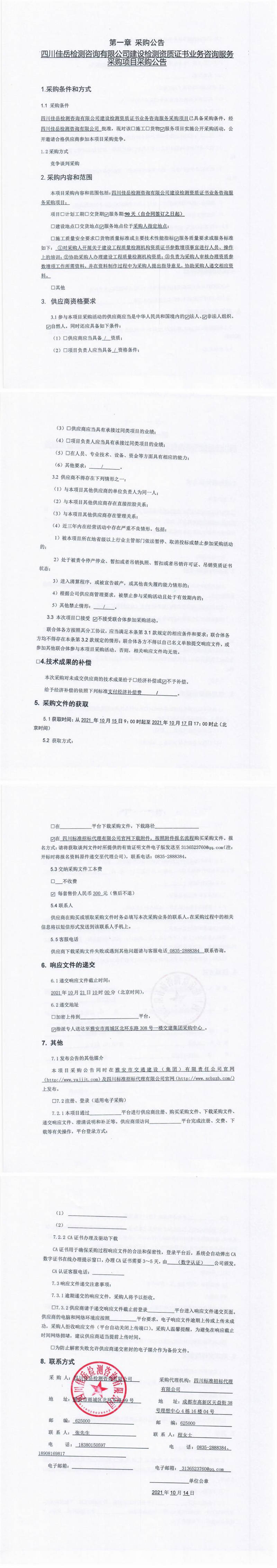 四川佳岳檢測(cè)咨詢有限公司建設(shè)檢測(cè)資質(zhì)證書業(yè)務(wù)咨詢服務(wù)采購(gòu)項(xiàng)目采購(gòu)公告