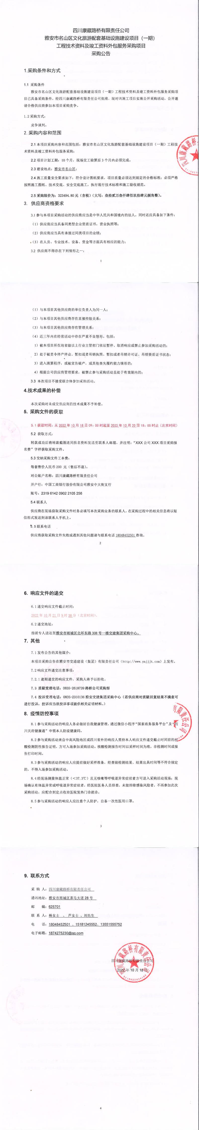 四川康藏路橋有限責任公司雅安市名山區(qū)文化旅游配套基礎(chǔ)設(shè)施建設(shè)項目(一期)工程技術(shù)資料及竣工資料外包服務(wù)采購項目采購公告