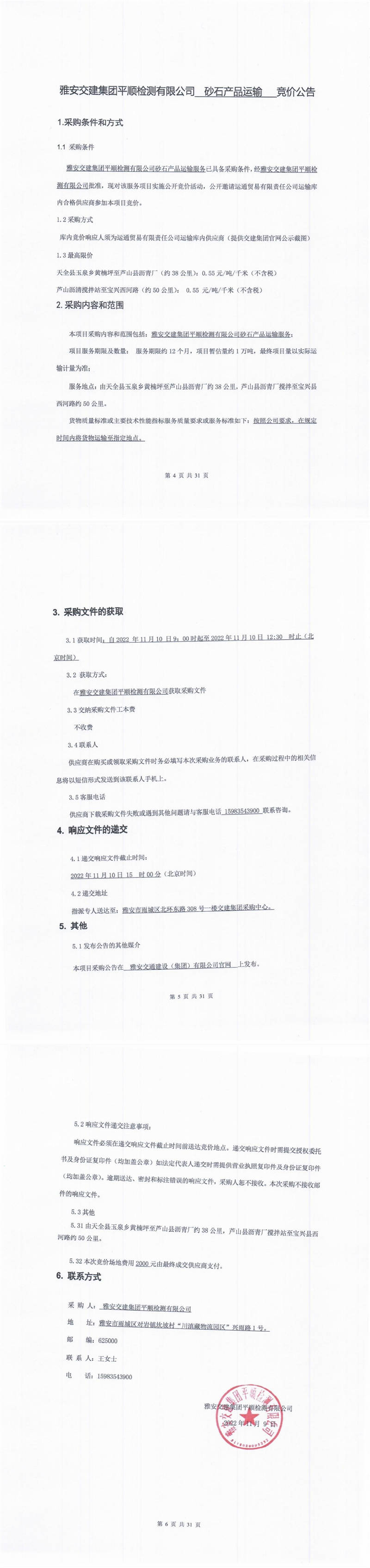 雅安交建集團(tuán)平順檢測有限公司砂石產(chǎn)品運(yùn)輸競價公告
