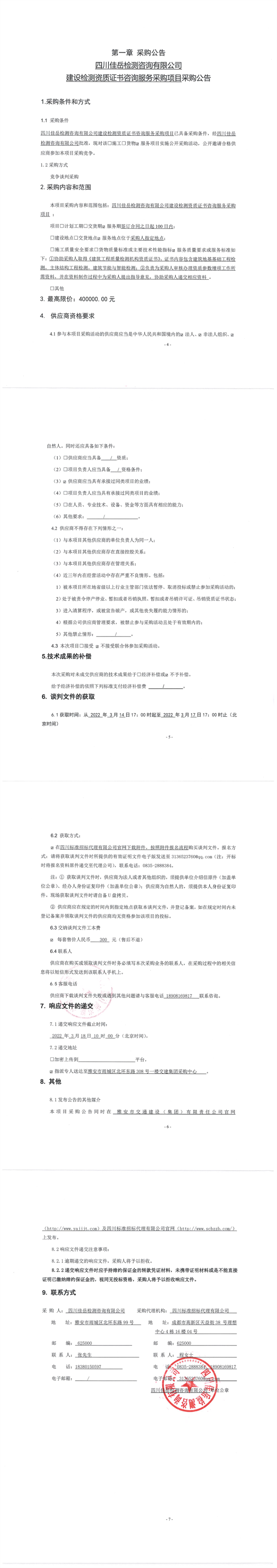 四川佳岳檢測(cè)咨詢有限公司建設(shè)檢測(cè)資質(zhì)證書咨詢服務(wù)采購(gòu)項(xiàng)目采購(gòu)公告