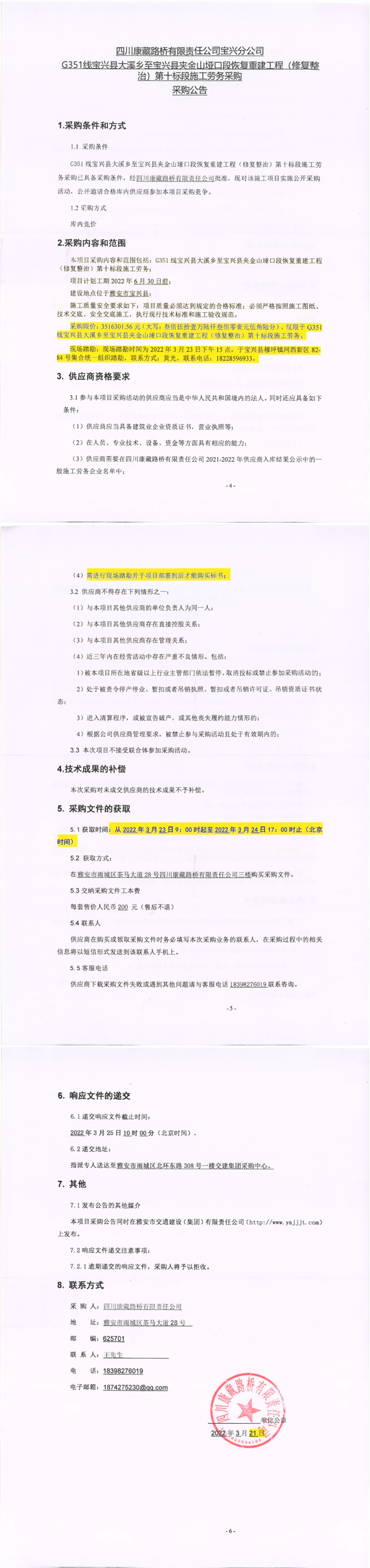四川康藏路橋有限責任公司寶興分公司G351線寶興縣大溪鄉(xiāng)至寶興縣夾金山埡口段恢復(fù)重建工程(修復(fù)整治)第十標段施工勞務(wù)采購采購公告