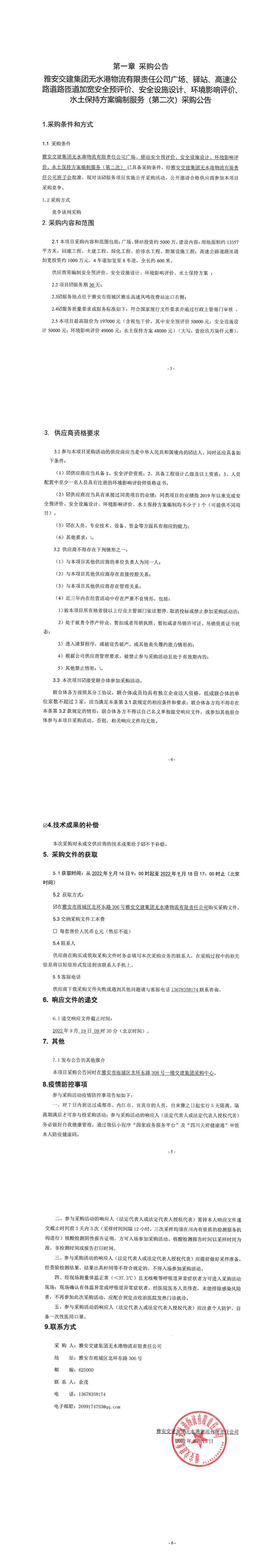 雅安交建集團(tuán)無水港物流有限責(zé)任公司廣場(chǎng)、驛站、高速公路道路匝道加寬安全預(yù)評(píng)價(jià)、安全設(shè)施設(shè)計(jì)、環(huán)境影響評(píng)價(jià)、水土保持方案編制服務(wù)(第二次)采購(gòu)公告