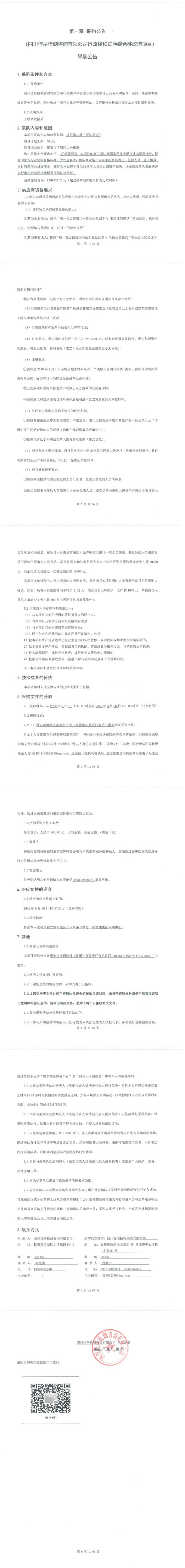 四川佳岳檢測咨詢有限公司行政樓和試驗綜合樓改造項目采購公告