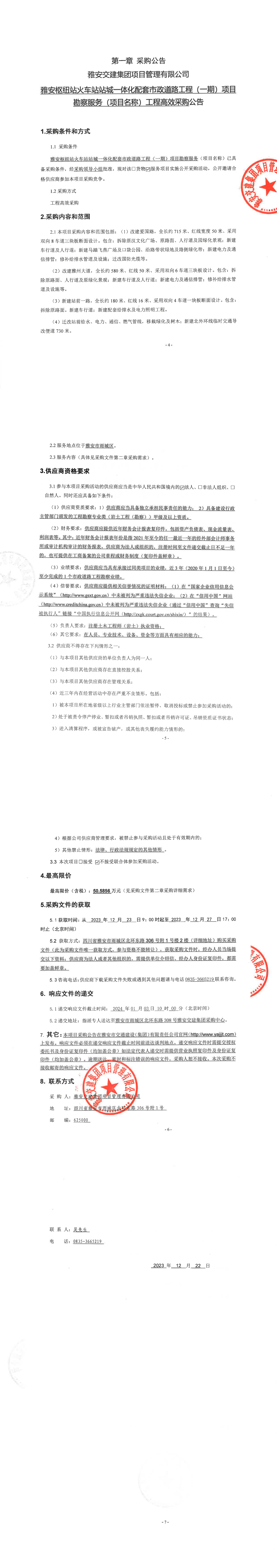 雅安交建集團(tuán)項(xiàng)目管理有限公司雅安樞紐站火車(chē)站站城一體化配套市政道路工程(一期)項(xiàng)目勘察服務(wù)(項(xiàng)目名稱(chēng))工程高效采購(gòu)公告