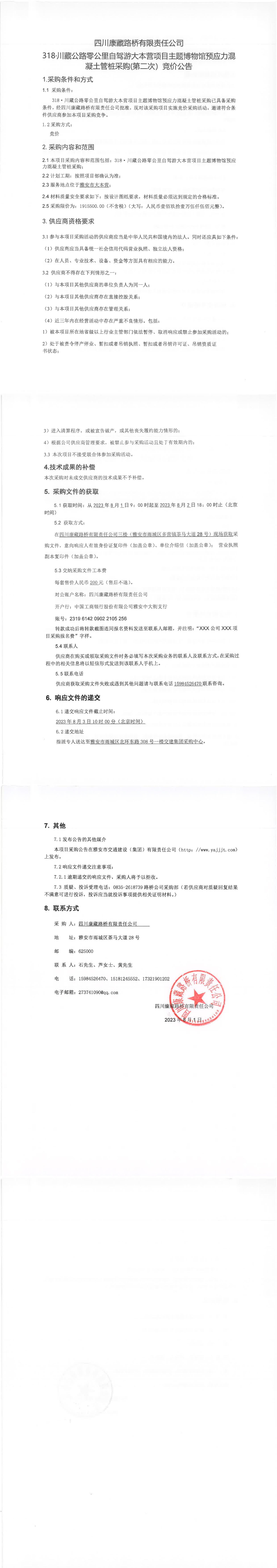 四川康藏路橋有限責(zé)任公司318·川藏公路零公里自駕游大本營(yíng)項(xiàng)目主題博物館預(yù)應(yīng)力混凝土管樁采購(第二次)競(jìng)價(jià)公告