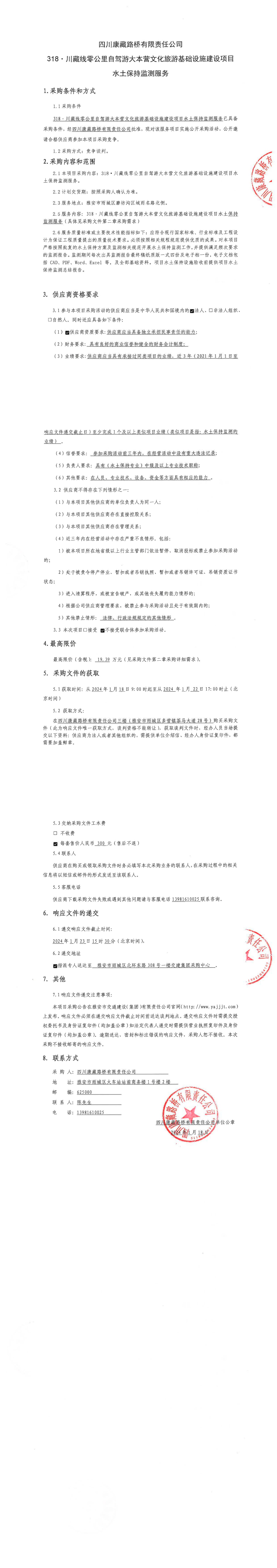 四川康藏路橋有限責(zé)任公司318·川藏線零公里自駕游大本營(yíng)文化旅游基礎(chǔ)設(shè)施建設(shè)項(xiàng)目水土保持監(jiān)測(cè)服務(wù)采購(gòu)公告