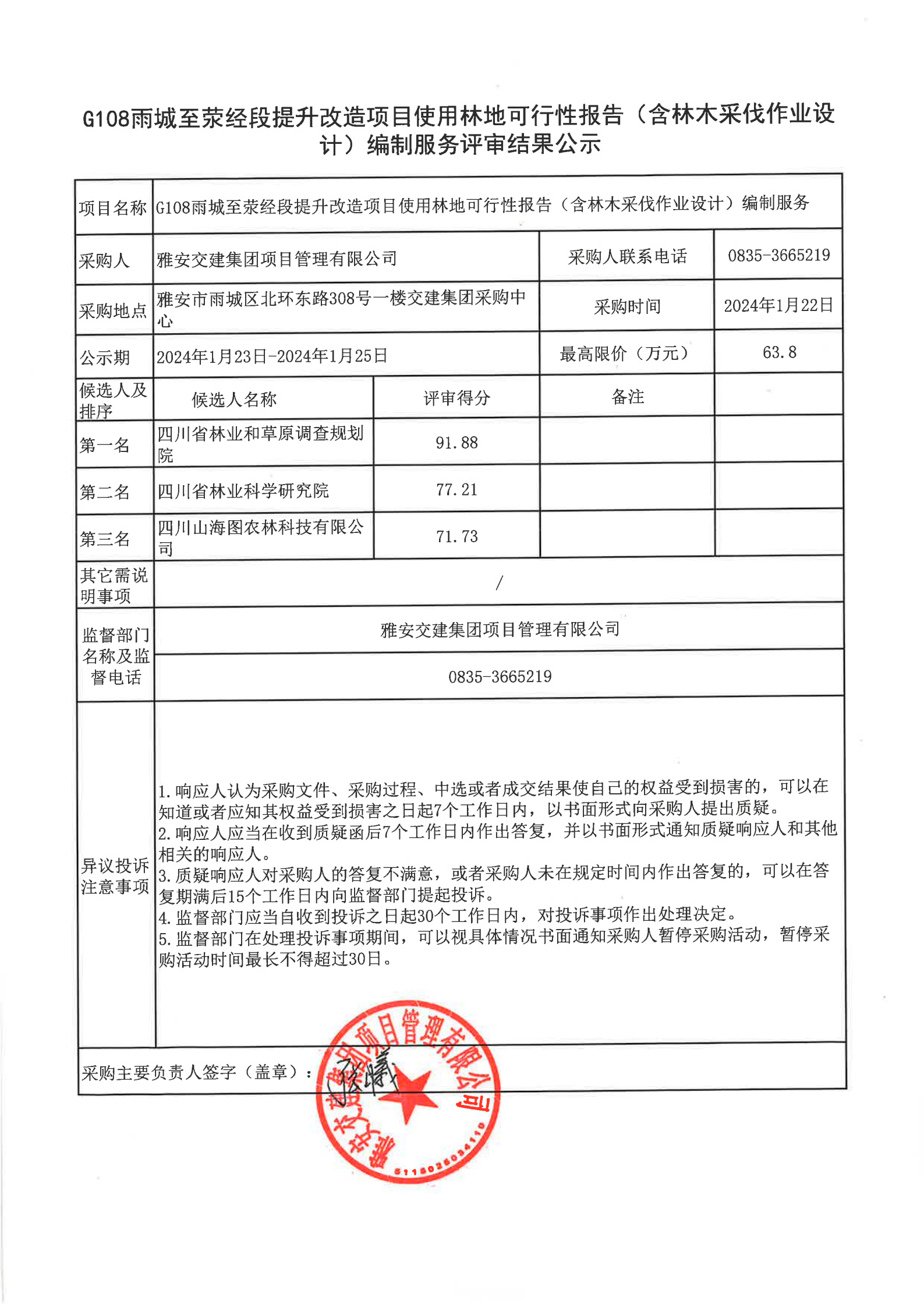 雅安交建集團(tuán)項(xiàng)目管理有限公司G108雨城至滎經(jīng)段提升改造項(xiàng)目使用林地可行性報(bào)告(含林木采伐作業(yè)設(shè)計(jì))編制服務(wù)評(píng)審結(jié)果公示