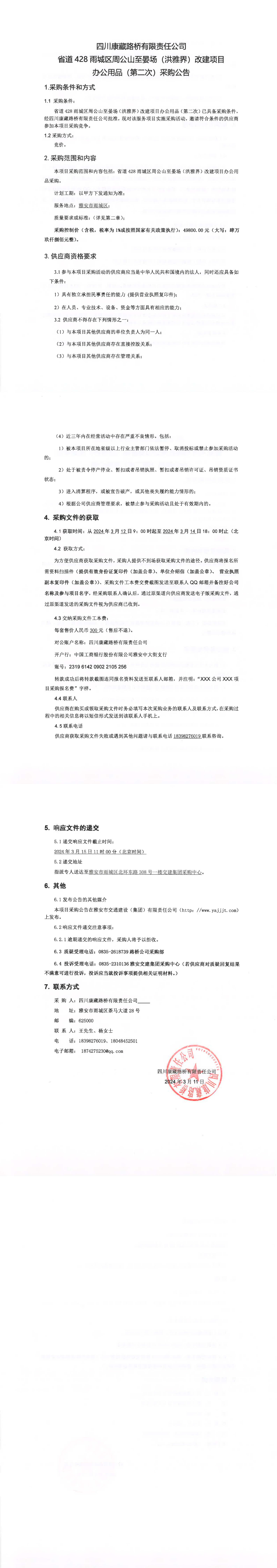 四川康藏路橋有限責(zé)任公司省道428雨城區(qū)周公山至晏場(洪雅界)改建項(xiàng)目辦公用品(第二次)采購公告