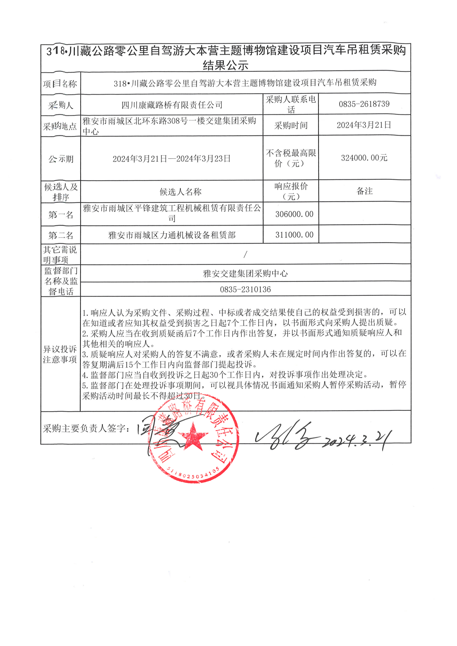 四川康藏路橋有限責(zé)任公司318·川藏公路零公里自駕游大本營(yíng)主題博物館建設(shè)項(xiàng)目汽車吊租賃采購(gòu)結(jié)果公示