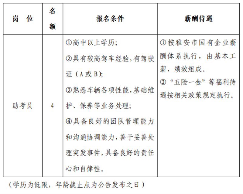 雅安交建集團平順檢測有限公司主要經(jīng)營項目為機動車安全技術(shù)檢驗、機動車駕駛員培訓(xùn)(科目二、三適應(yīng)性訓(xùn)練)、機動車環(huán)保定期檢驗、汽車綜合性能檢測等相關(guān)業(yè)務(wù)。因業(yè)務(wù)發(fā)展需要面向社會招聘人員,特公告如下: