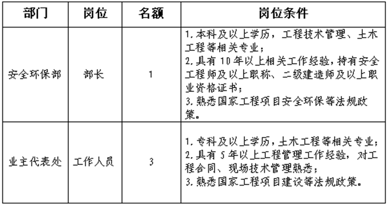 根據(jù)發(fā)展需要,決定面向社會(huì)公開招聘雅安市交通建設(shè)(集團(tuán))有限責(zé)任公司(以下簡(jiǎn)稱“雅安交建集團(tuán)”)所屬子公司相關(guān)人員4名,現(xiàn)將有關(guān)事項(xiàng)公告如下: