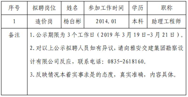 雅安交建集團(tuán)勘察設(shè)計(jì)有限公司擬聘用人員公示