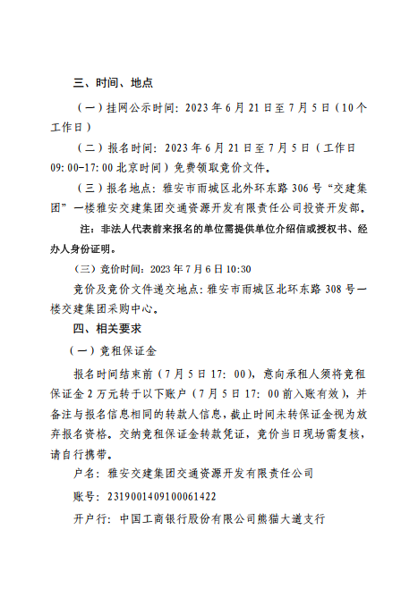 雅安交建集團(tuán)交通資源開(kāi)發(fā)有限責(zé)任公司關(guān)于雅安市雨城區(qū)姚橋21-01、水中壩安置房西側(cè)地塊招租的公告