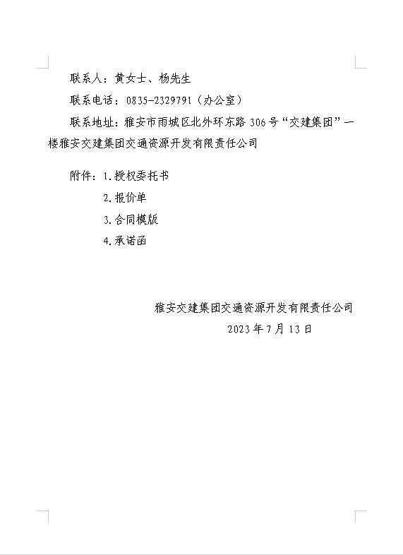 雅安交建集團(tuán)交通資源開發(fā)有限責(zé)任公司雨名快速通道名山服務(wù)區(qū)場地(游樂類項目)招租公告附件