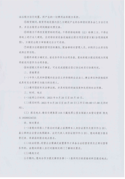 四川康藏路橋有限責(zé)任公司318·川藏線零公里自駕游大本營臨時用地臨時招租征集公告