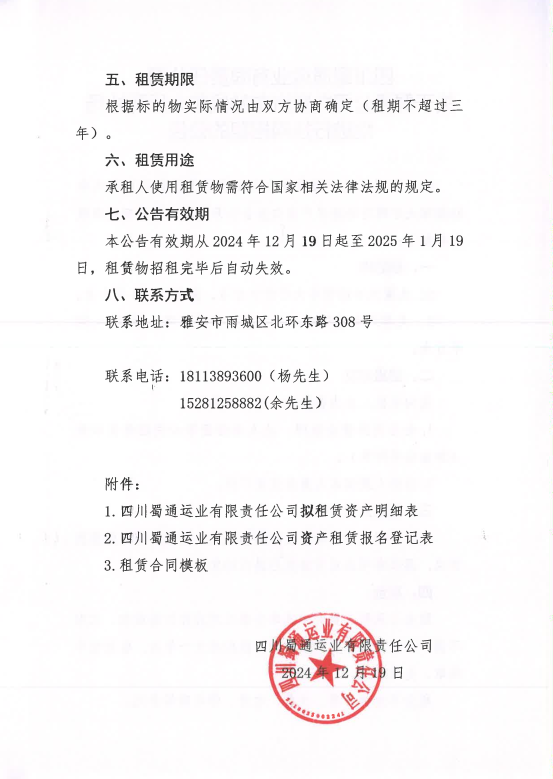 四川蜀通運(yùn)業(yè)郵箱責(zé)任公司關(guān)于蜀通公司九襄汽車(chē)站候車(chē)大廳兩處場(chǎng)地進(jìn)行掛網(wǎng)招租的公告附件