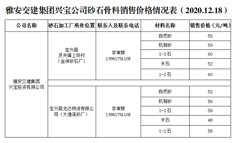 ÑŰ²½»½¨¼¯ˆF(tu¨¢n)ÔÆÊ¯¹«Ë¾É°Ê¯¹ÇÁÏäNÊÛƒr(ji¨¤)¸ñÇé›r±í£¨2020.12.15£©