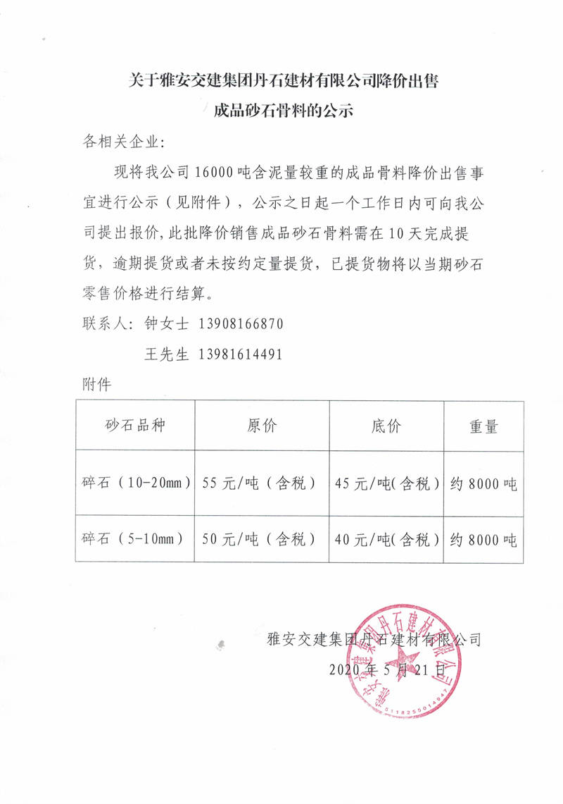 ÑŰ²½»½¨¼¯ˆF(tu¨¢n)ß\(y¨´n)ͨ¹«Ë¾É°Ê¯¹ÇÁÏäNÊÛƒr(ji¨¤)¸ñÇé›r±í£¨2020.5.15£©