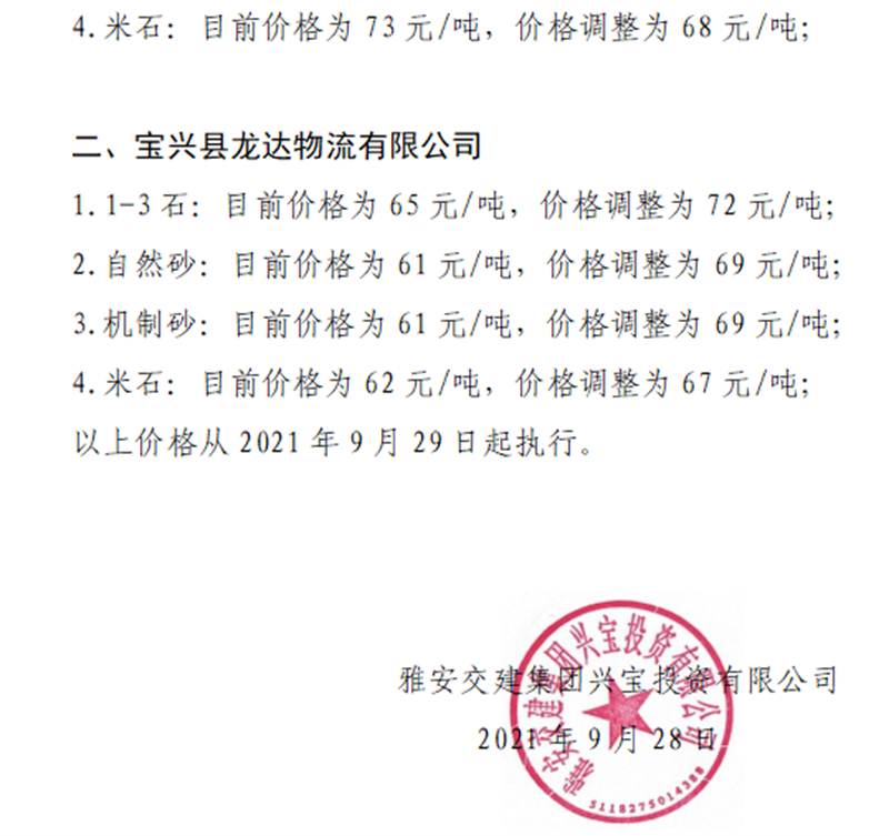 ÑŰ²½»½¨¼¯ˆF(tu¨¢n)ÅdŒš¹«Ë¾êP(gu¨¡n)ÓÚÕ{(di¨¤o)Õûɰʯ³ÉÆ·ÁÏäNÊÛƒr(ji¨¤)¸ñµÄ֪ͨ£¨2021.9.28£©