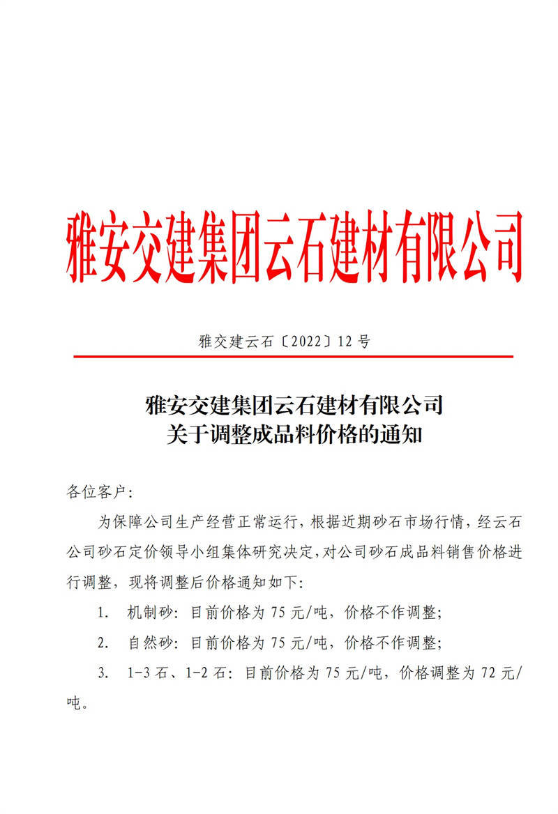 ÑŰ²½»½¨¼¯ˆF(tu¨¢n)ÅdŒšÍ¶ÙYÓÐÏÞ¹«Ë¾ êP(gu¨¡n)ÓÚÕ{(di¨¤o)Õûɰʯ³ÉÆ·ÁÏäNÊÛƒr(ji¨¤)¸ñµÄ֪ͨ£¨2022-2-23£©