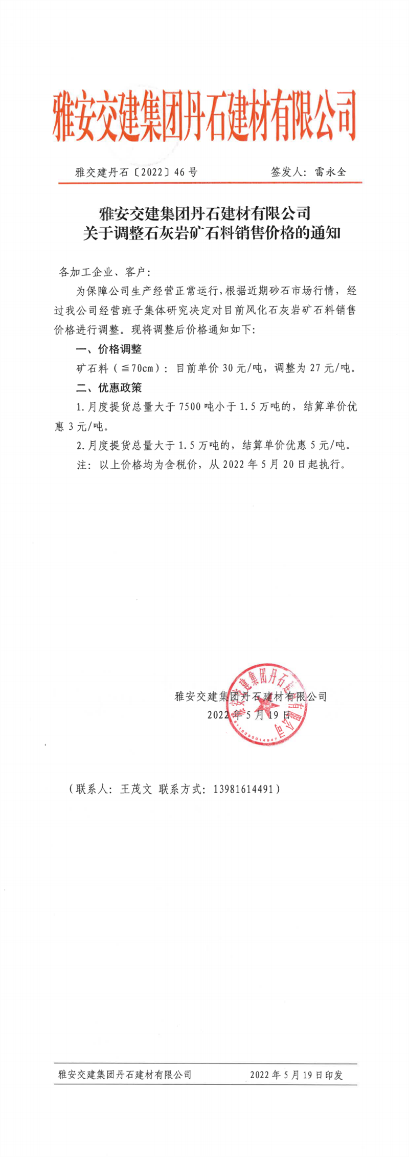 ÑŰ²½»½¨¼¯ˆF(tu¨¢n)µ¤Ê¯¹«Ë¾êP(gu¨¡n)ÓÚÕ{(di¨¤o)Õûʯ»Ò?gu¨©)rµVʯÁσr(ji¨¤)¸ñµÄ֪ͨ-2022-5-19