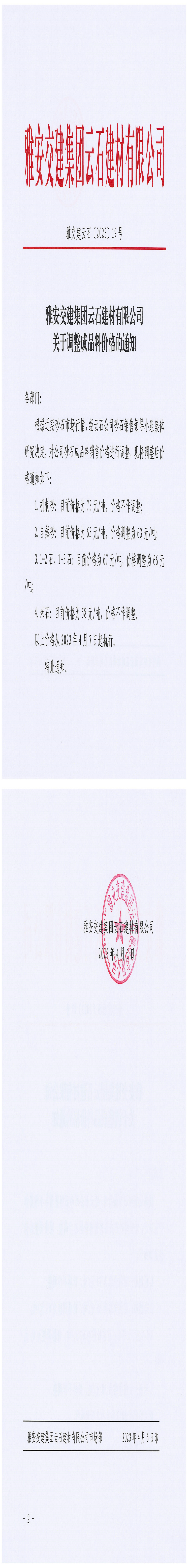 ÑŰ²½»½¨¼¯ˆF(tu¨¢n)ÔÆÊ¯½¨²ÄÓÐÏÞ¹«Ë¾êP(gu¨¡n)ÓÚÕ{(di¨¤o)Õû³ÉÆ·Áσr(ji¨¤)¸ñµÄ֪ͨ£¨2023-4-6£©