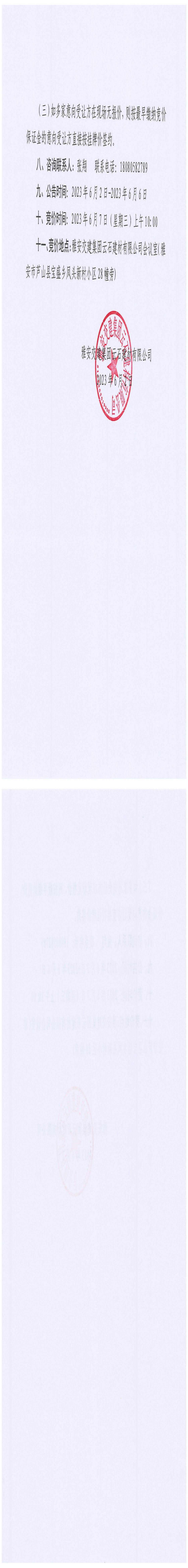 雅安交建集團興寶投資有限公司寶興縣靈關鎮(zhèn)代碑寺土地整理項目5萬噸細骨料競價銷售公告(2023.6.5)